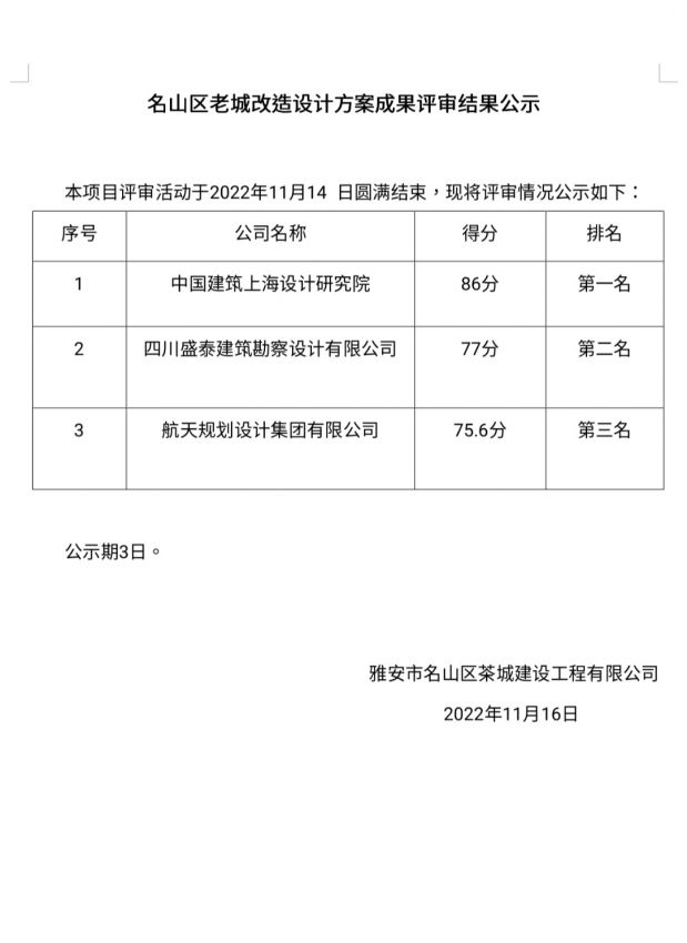 名山區(qū)老城改造設(shè)計方案成果評審結(jié)果公示